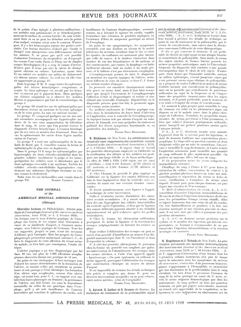 1929, Revue des journaux. -