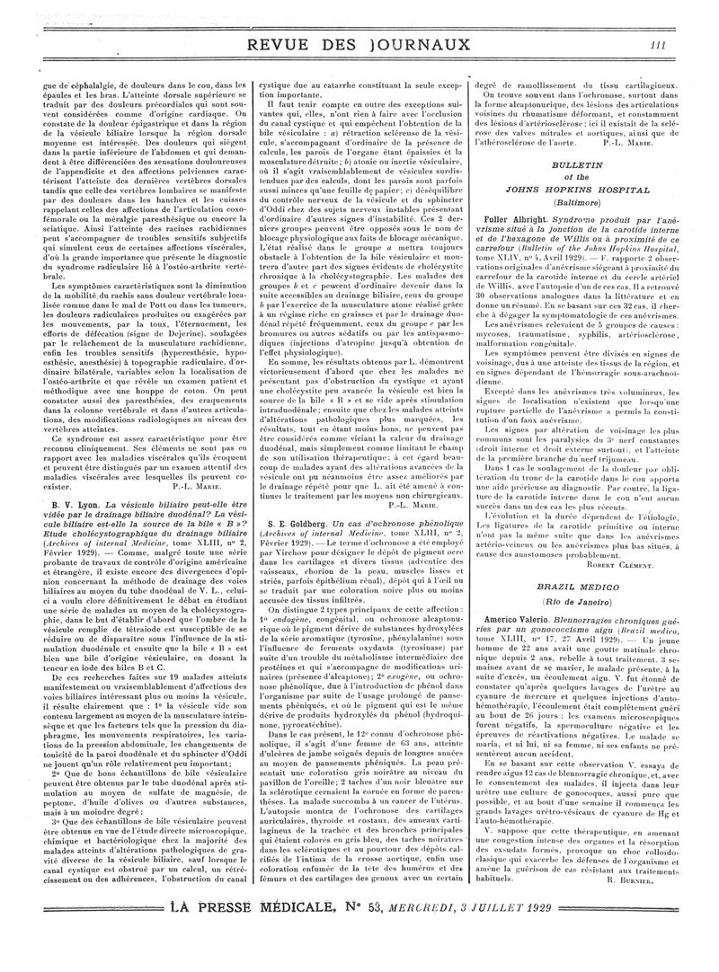 1929, Revue des journaux. -