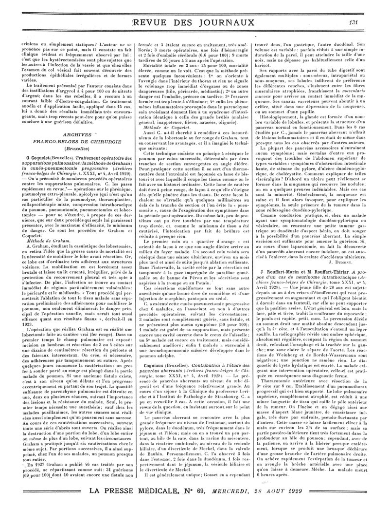 1929, Revue des journaux. -