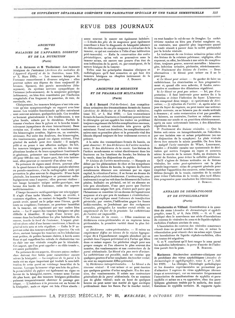 1929, Revue des journaux. -