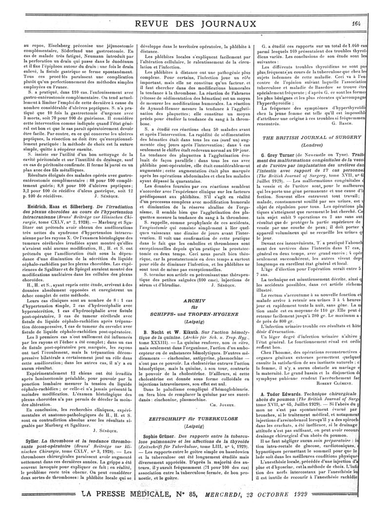 1929, Revue des journaux. -