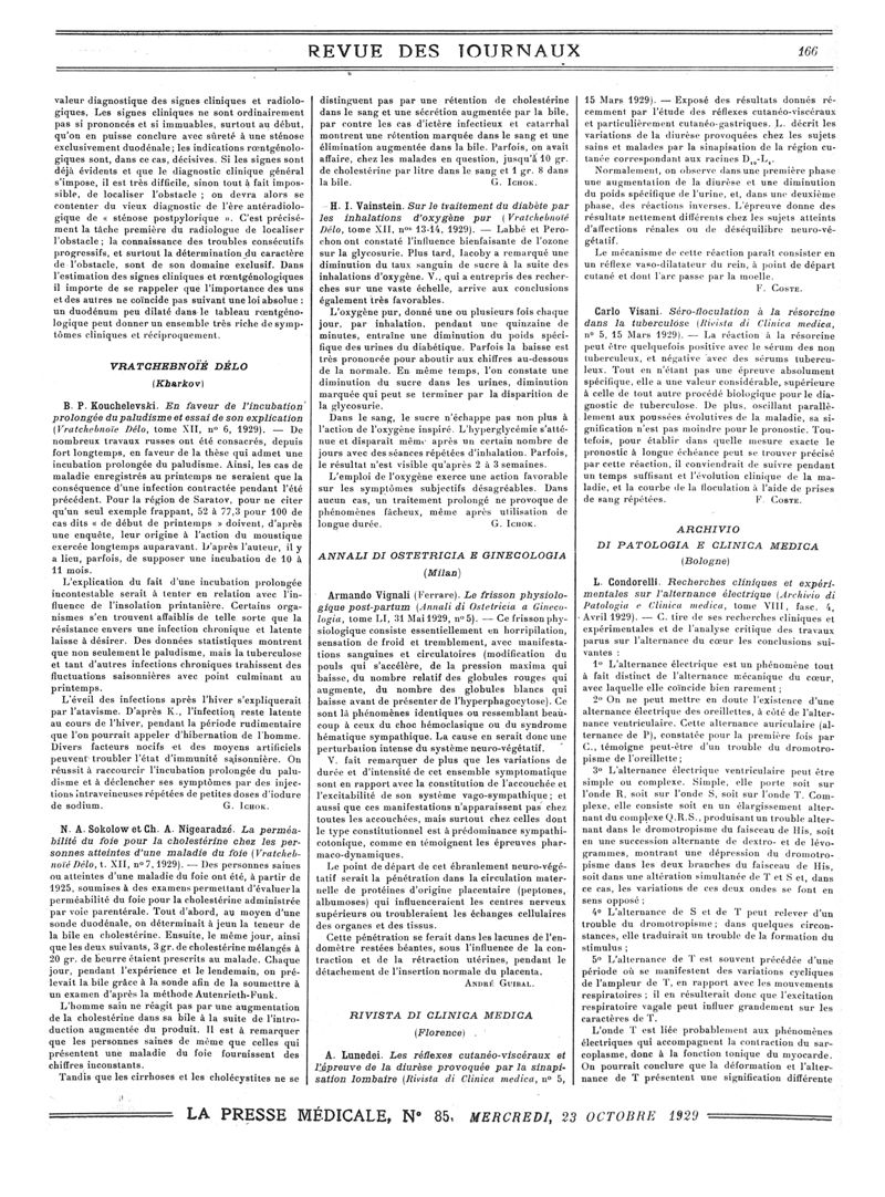 1929, Revue des journaux. -