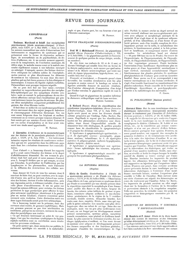 1929, Revue des journaux. -