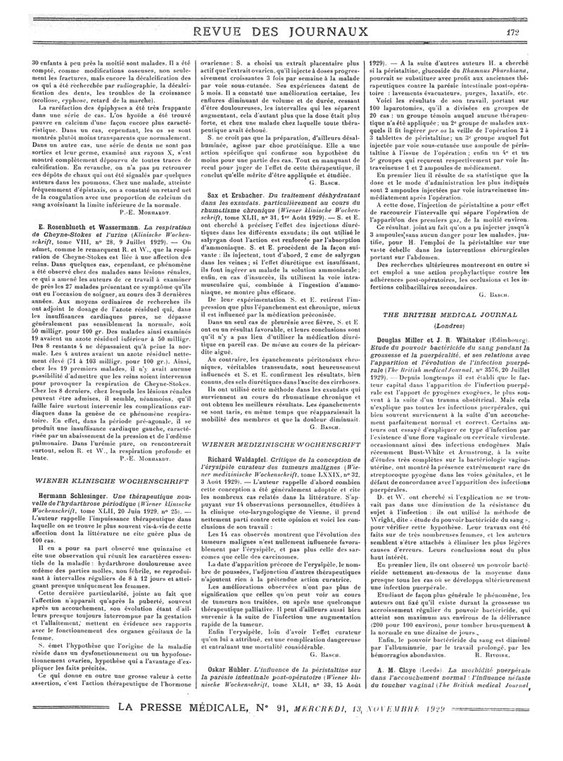 1929, Revue des journaux. -