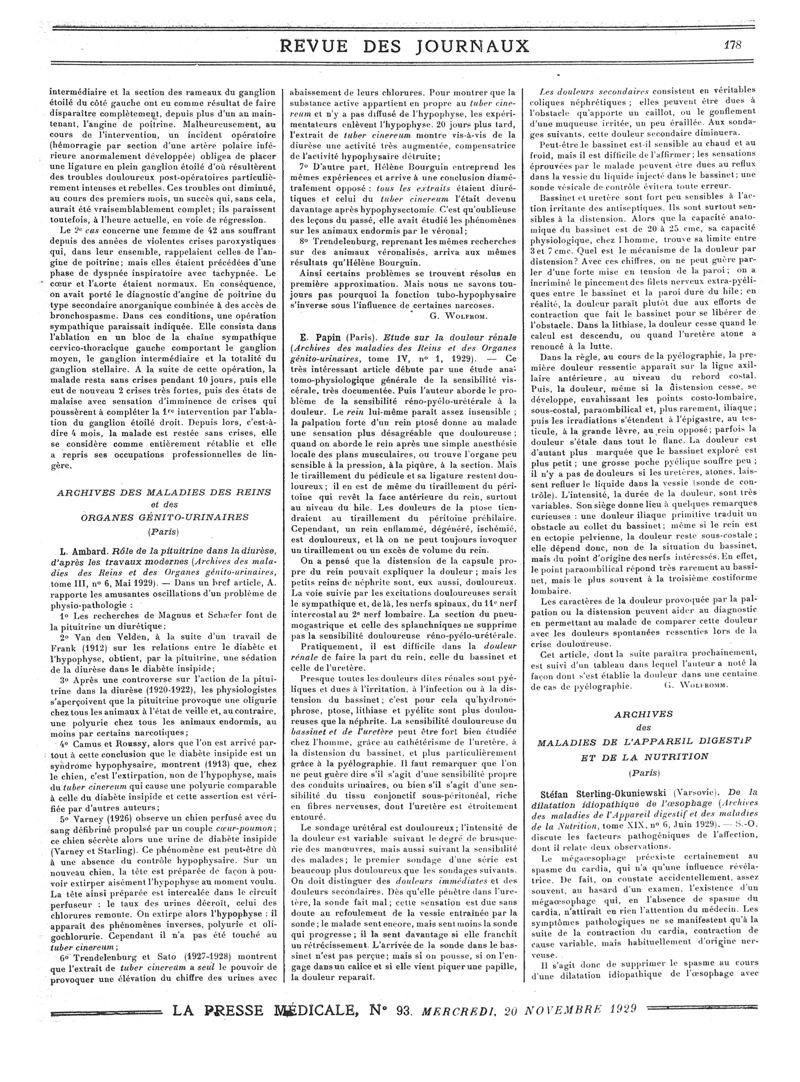 1929, Revue des journaux. -
