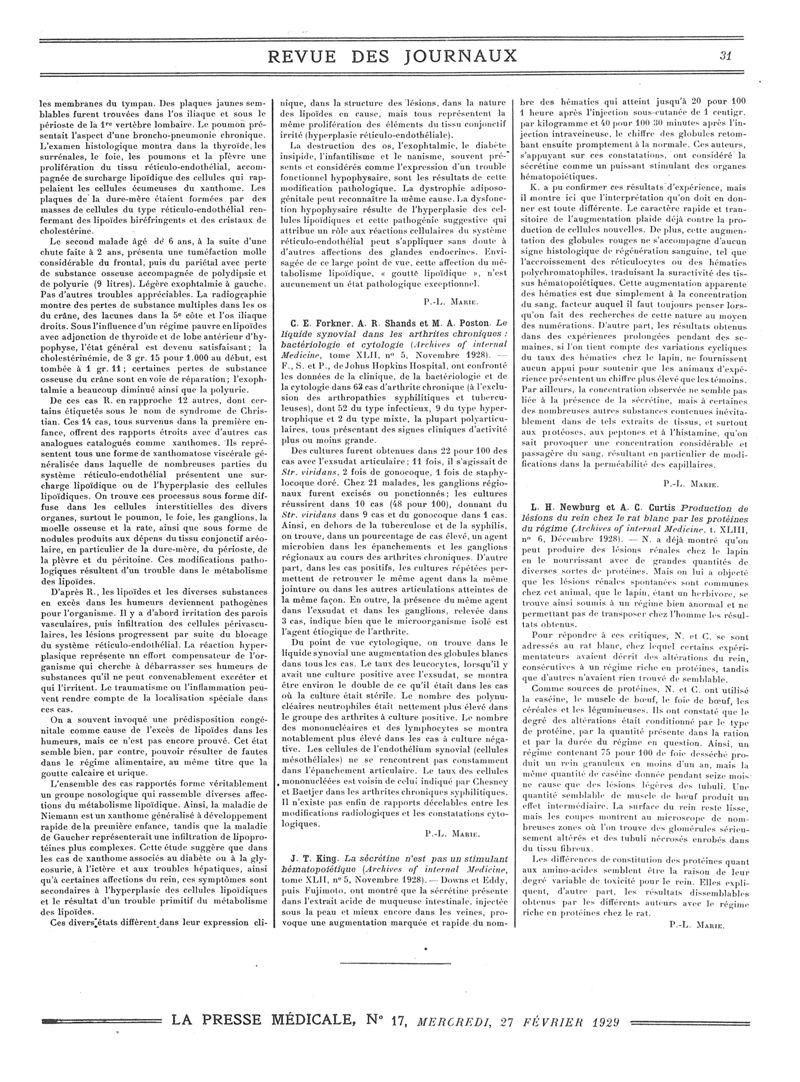 1929, Revue des journaux. -