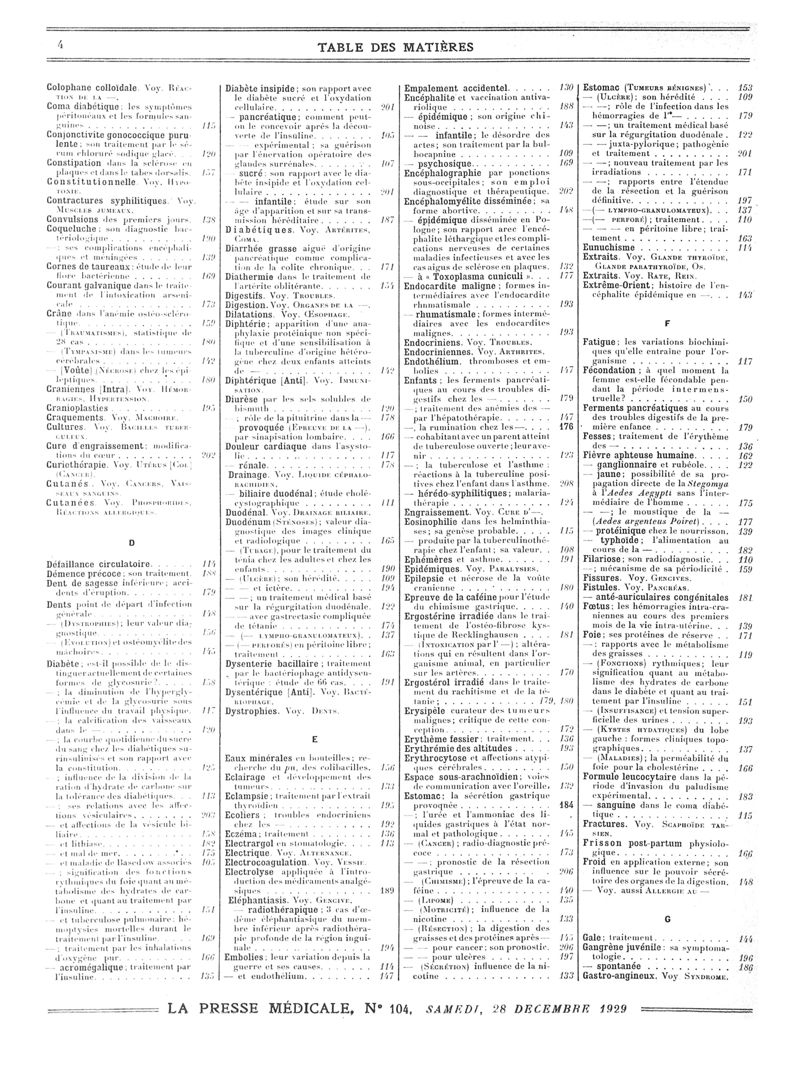 1929, Volume de tables. -