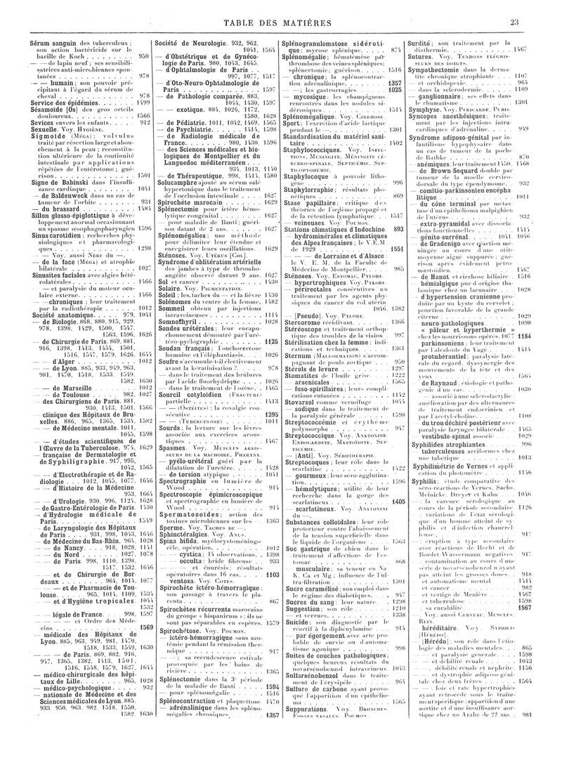 1929, Volume de tables. -