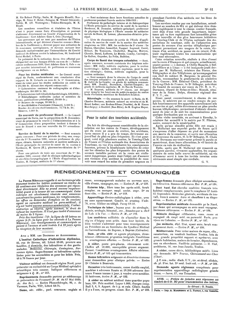 1930, Articles originaux. -