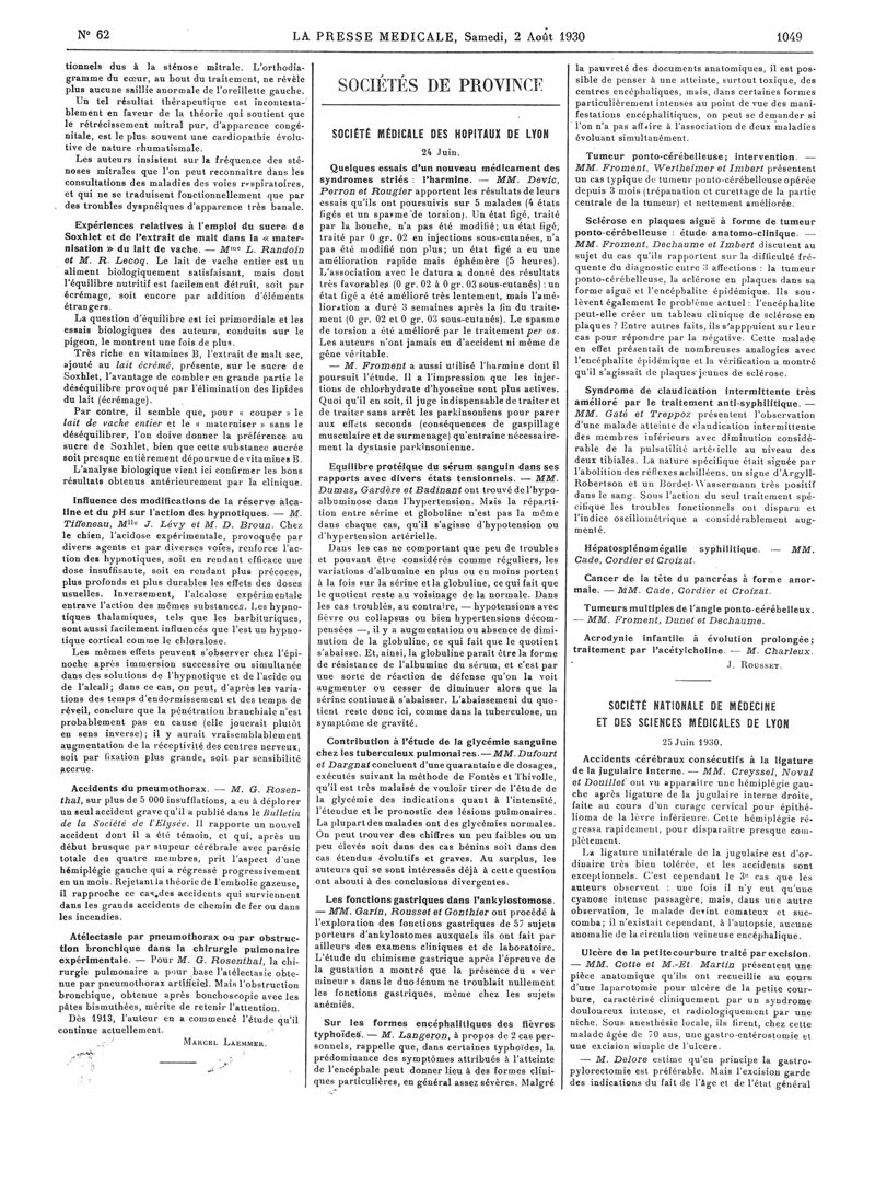 1930, Articles originaux. -