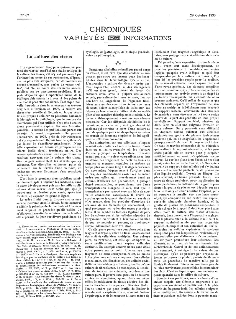 1930, Articles originaux. -