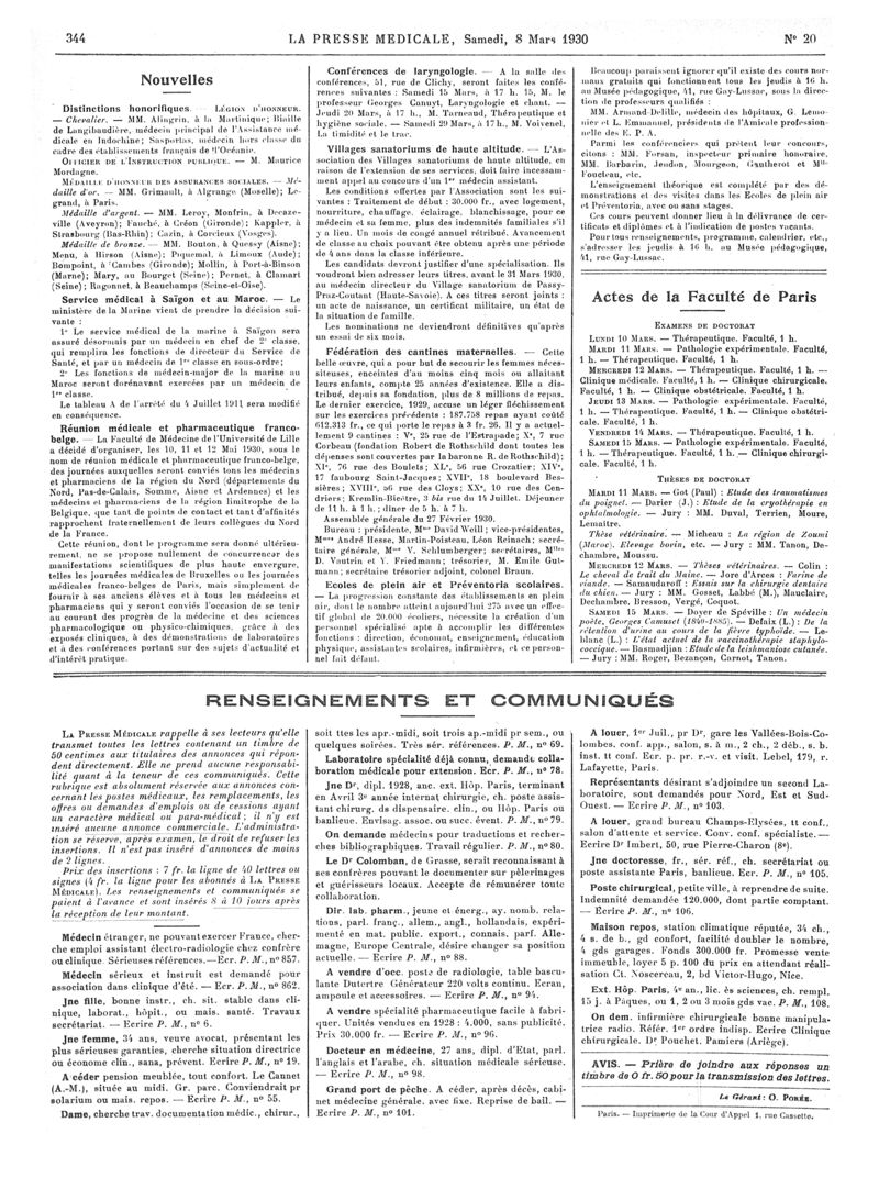 1930, Articles originaux. -