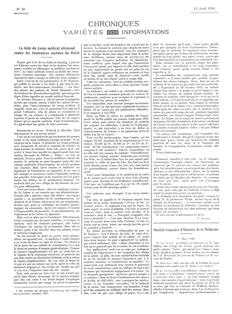 1930, Articles originaux. -