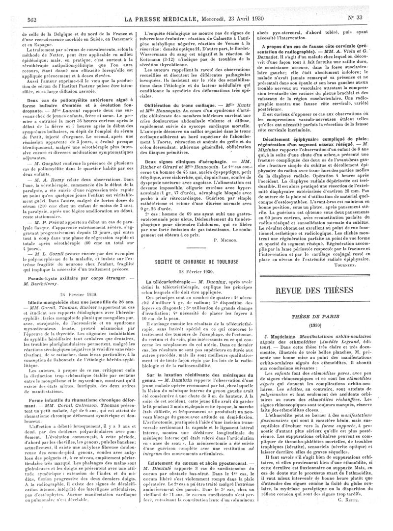 1930, Articles originaux. -