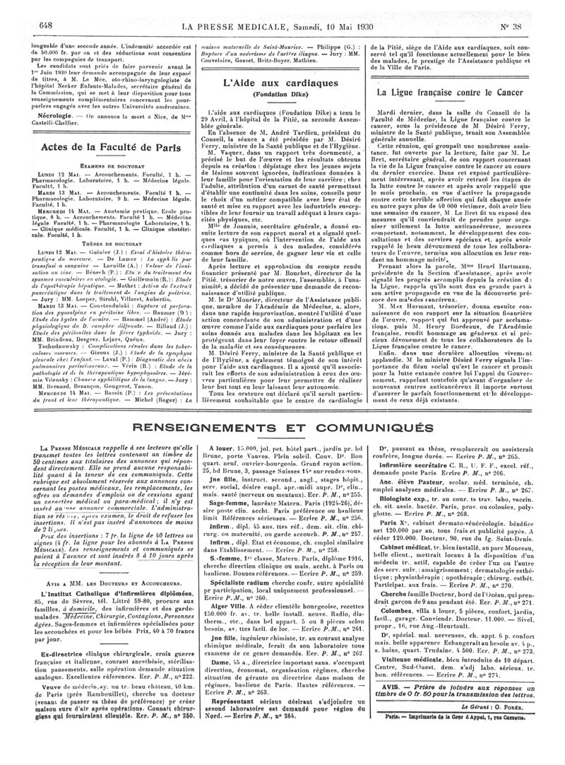 1930, Articles originaux. -