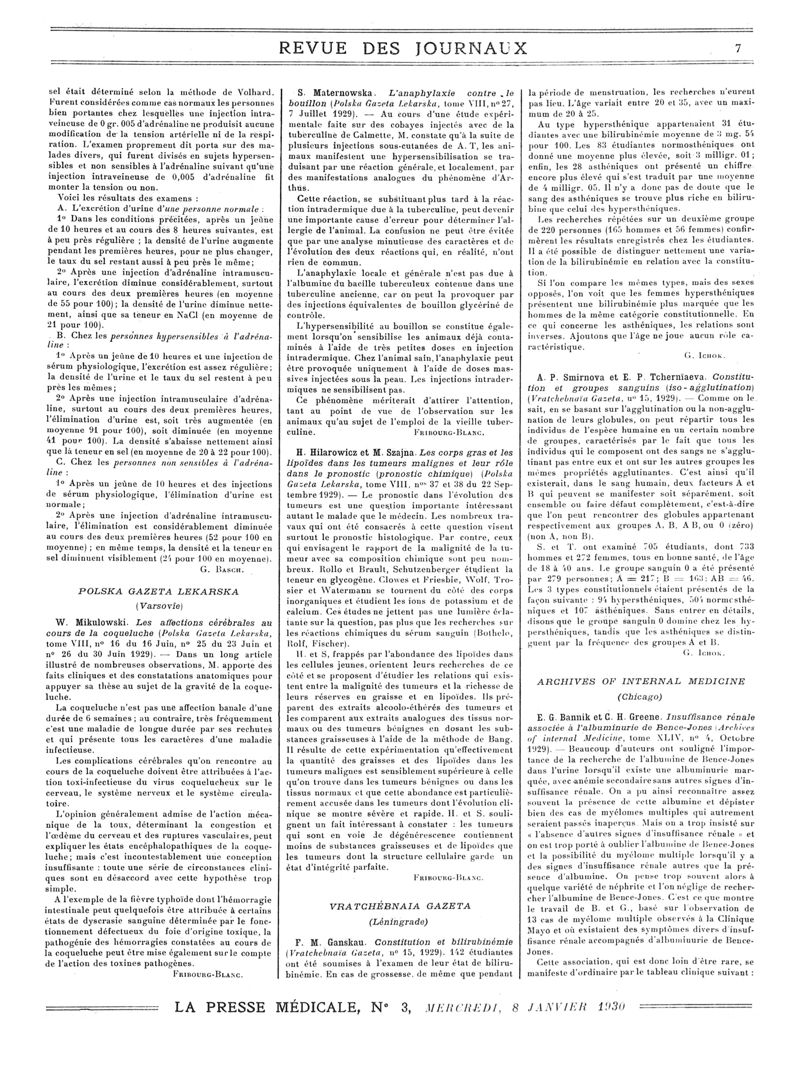 1930, Revue des journaux. -