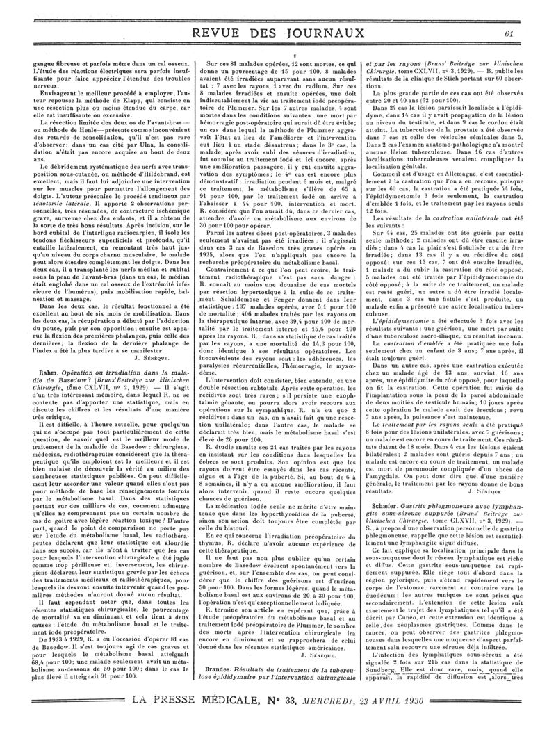1930, Revue des journaux. -