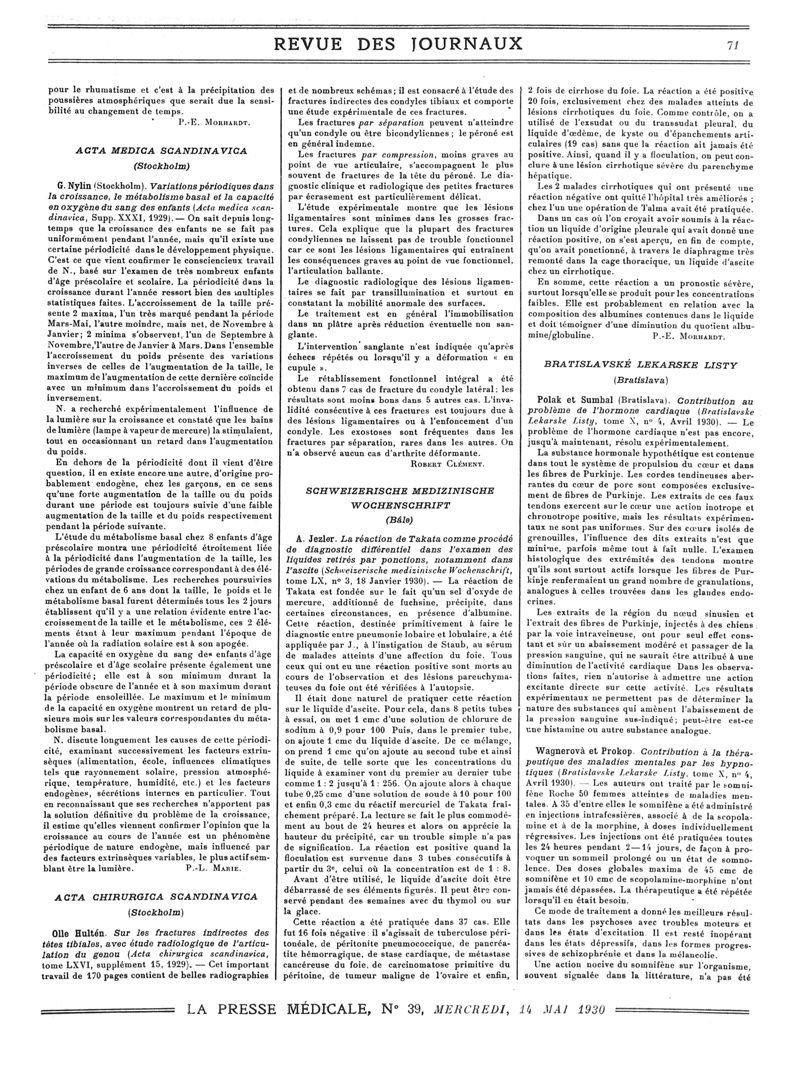 1930, Revue des journaux. -