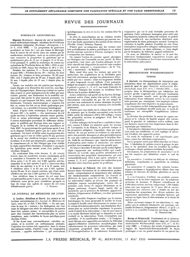 1930, Revue des journaux. -