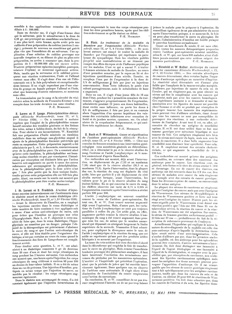 1930, Revue des journaux. -