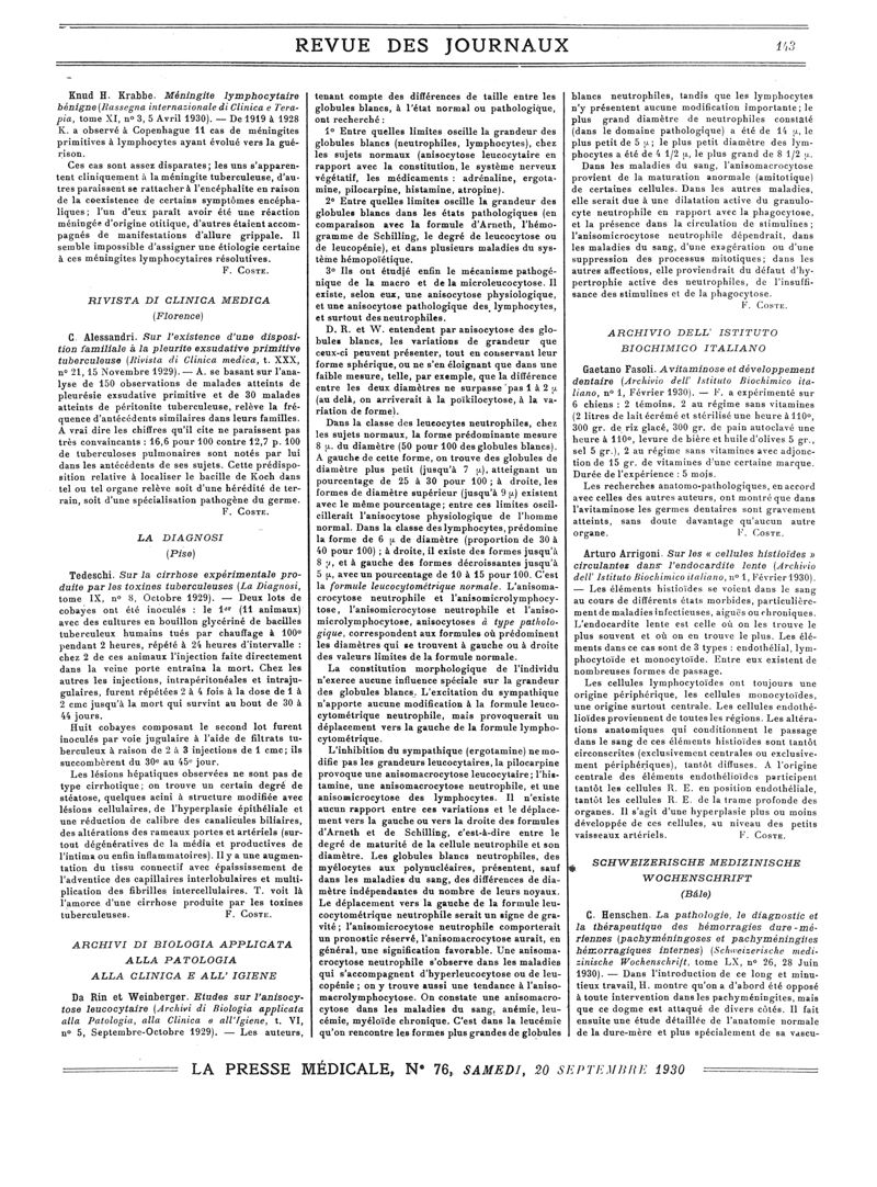 1930, Revue des journaux. -
