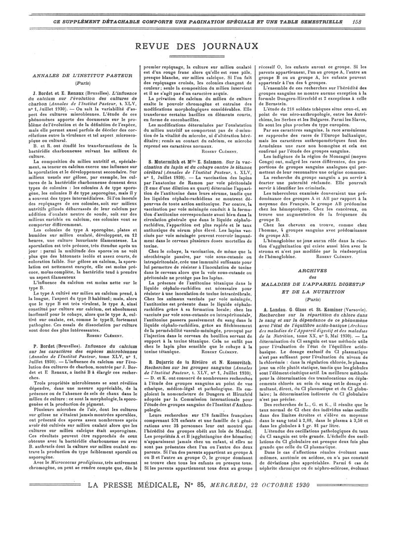 1930, Revue des journaux. -