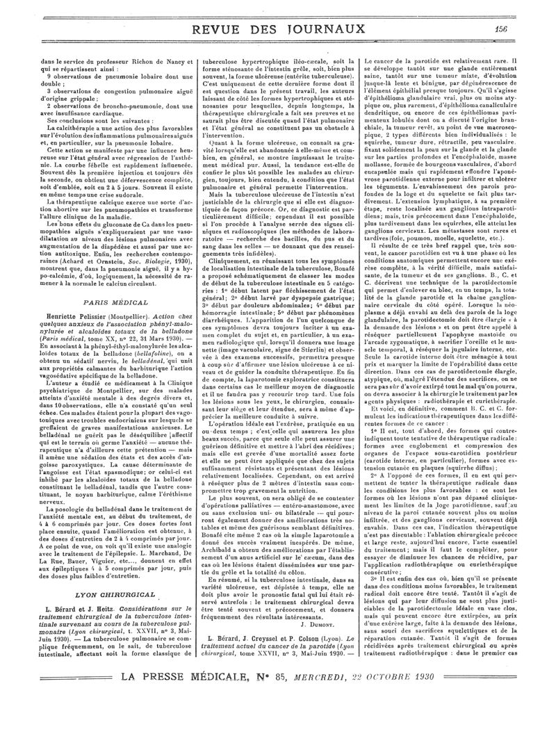 1930, Revue des journaux. -