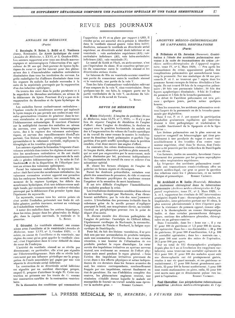 1930, Revue des journaux. -