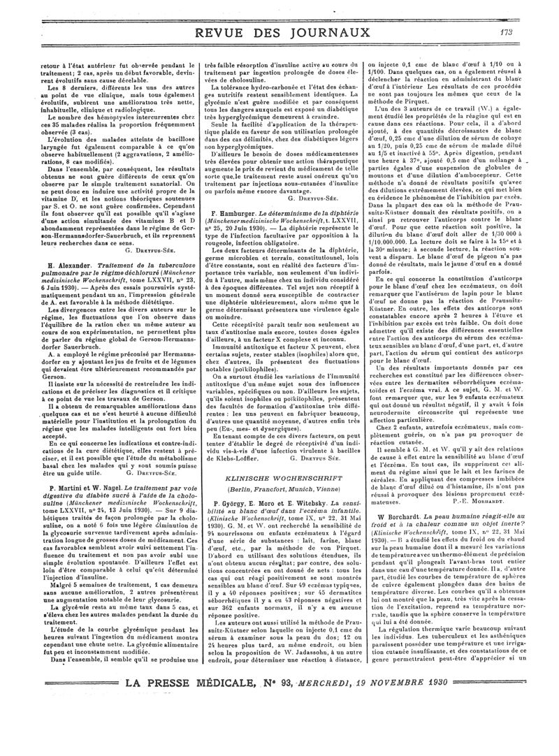 1930, Revue des journaux. -