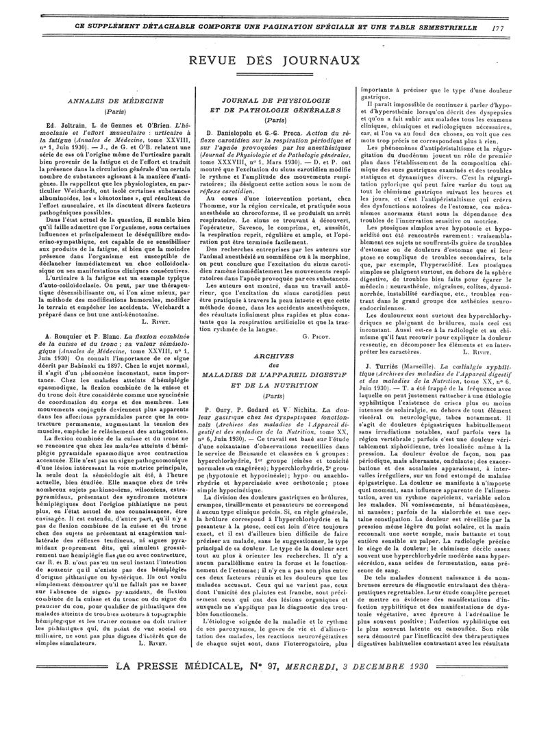 1930, Revue des journaux. -