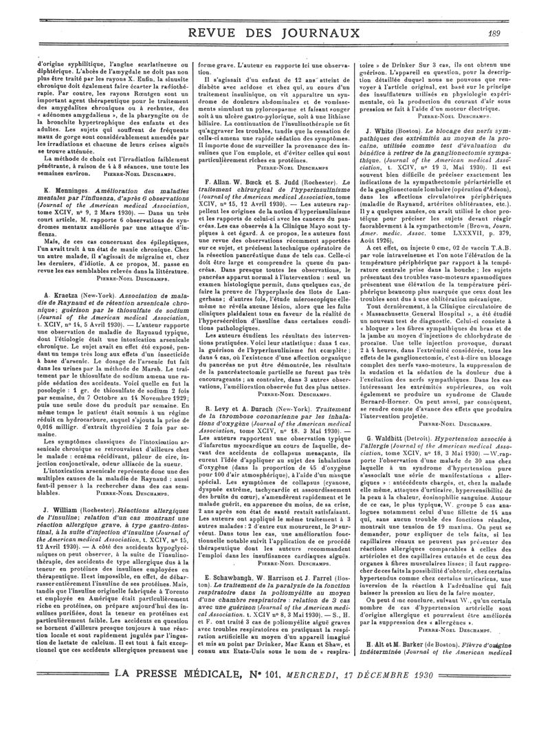 1930, Revue des journaux. -