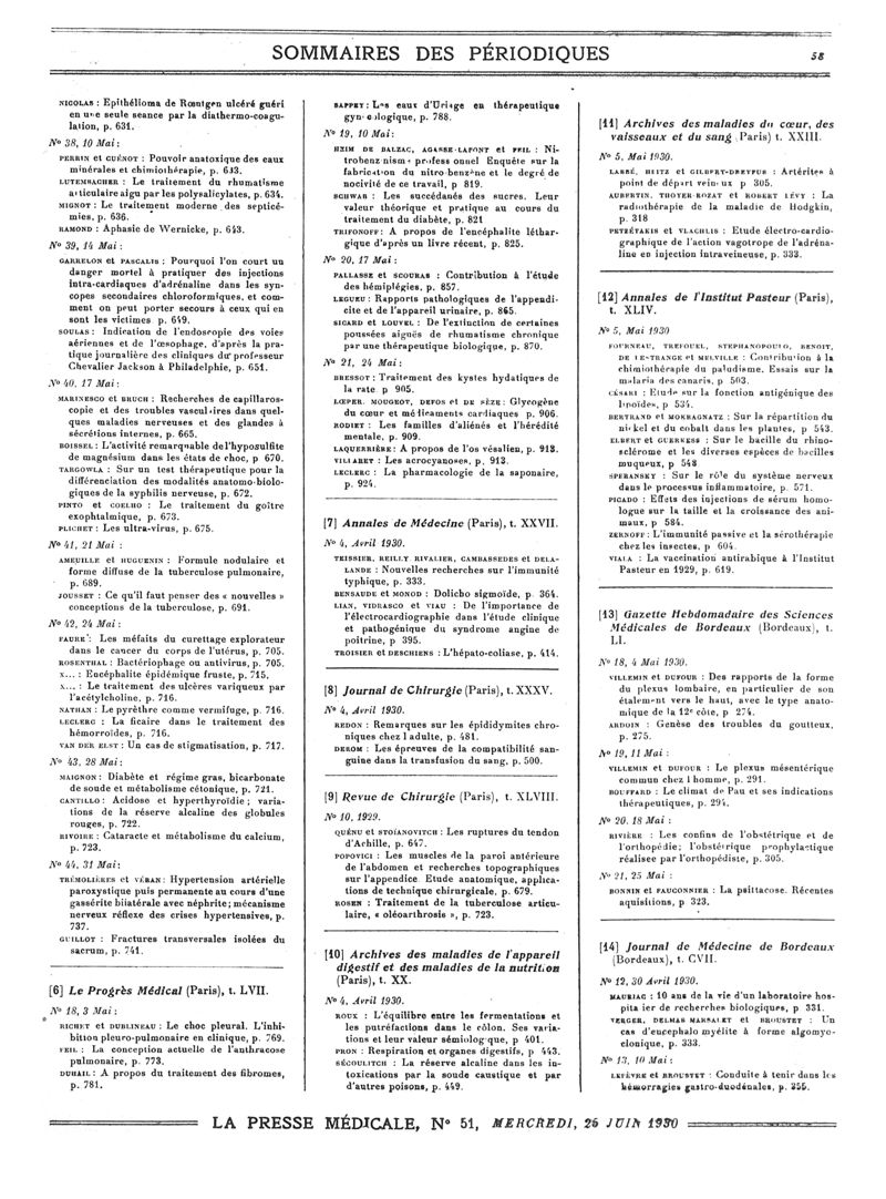1930, Sommaires des périodiques. -