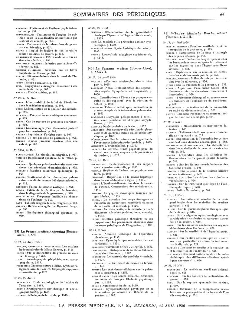 1930, Sommaires des périodiques. -