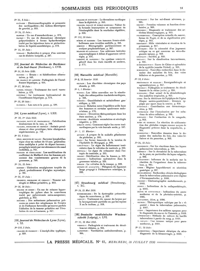 1930, Sommaires des périodiques. -