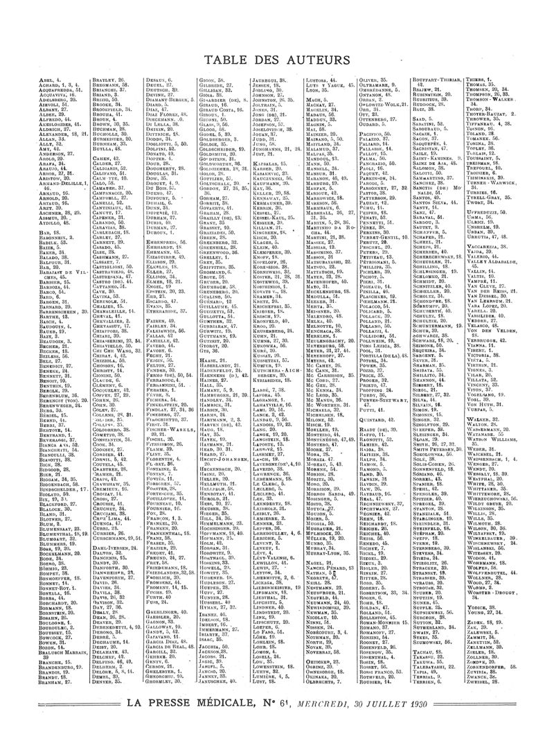 1930, Sommaires des périodiques. -