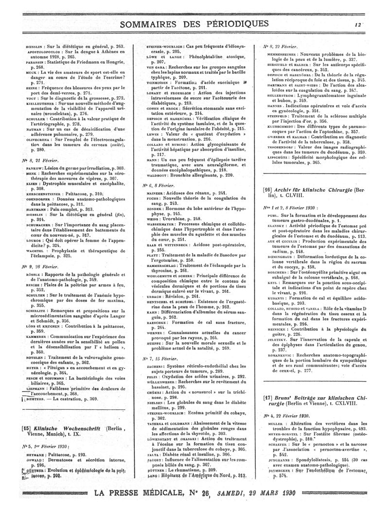 1930, Sommaires des périodiques. -