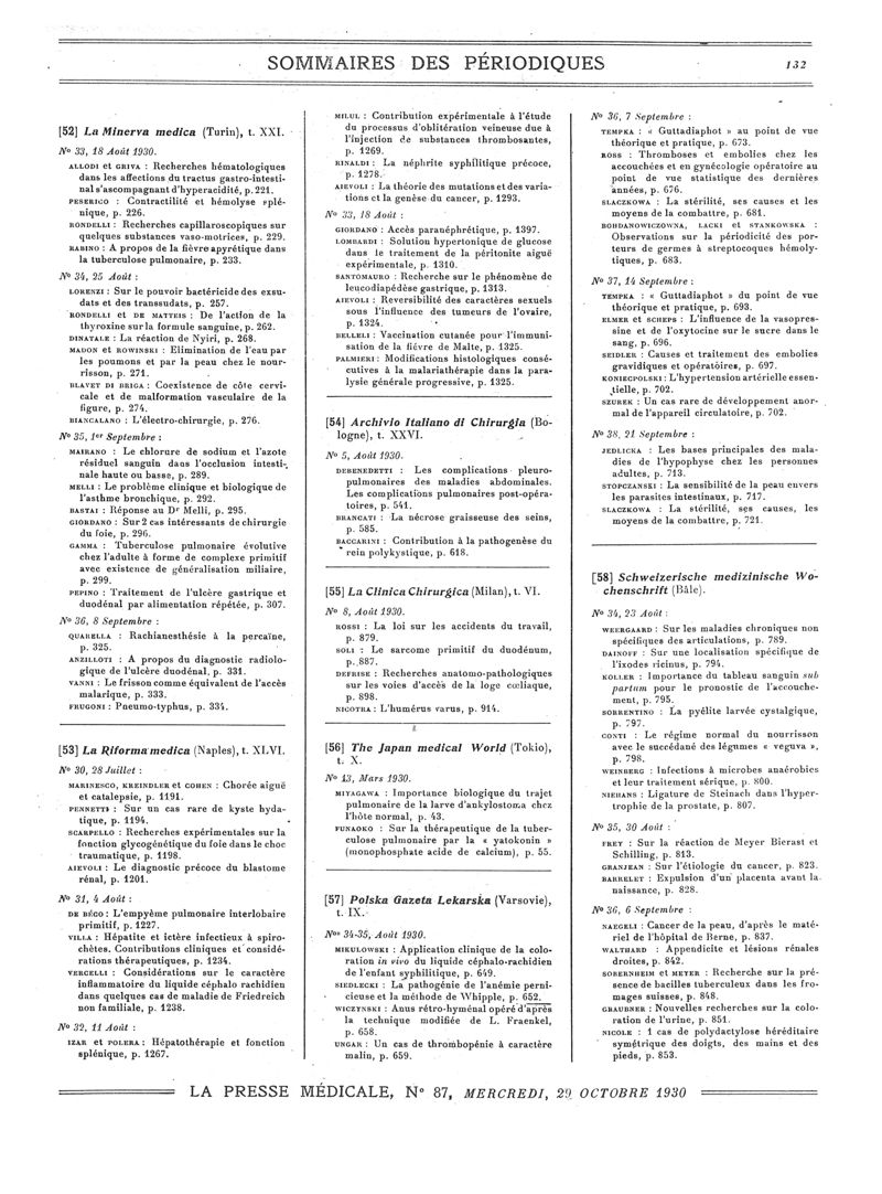 1930, Sommaires des périodiques. -