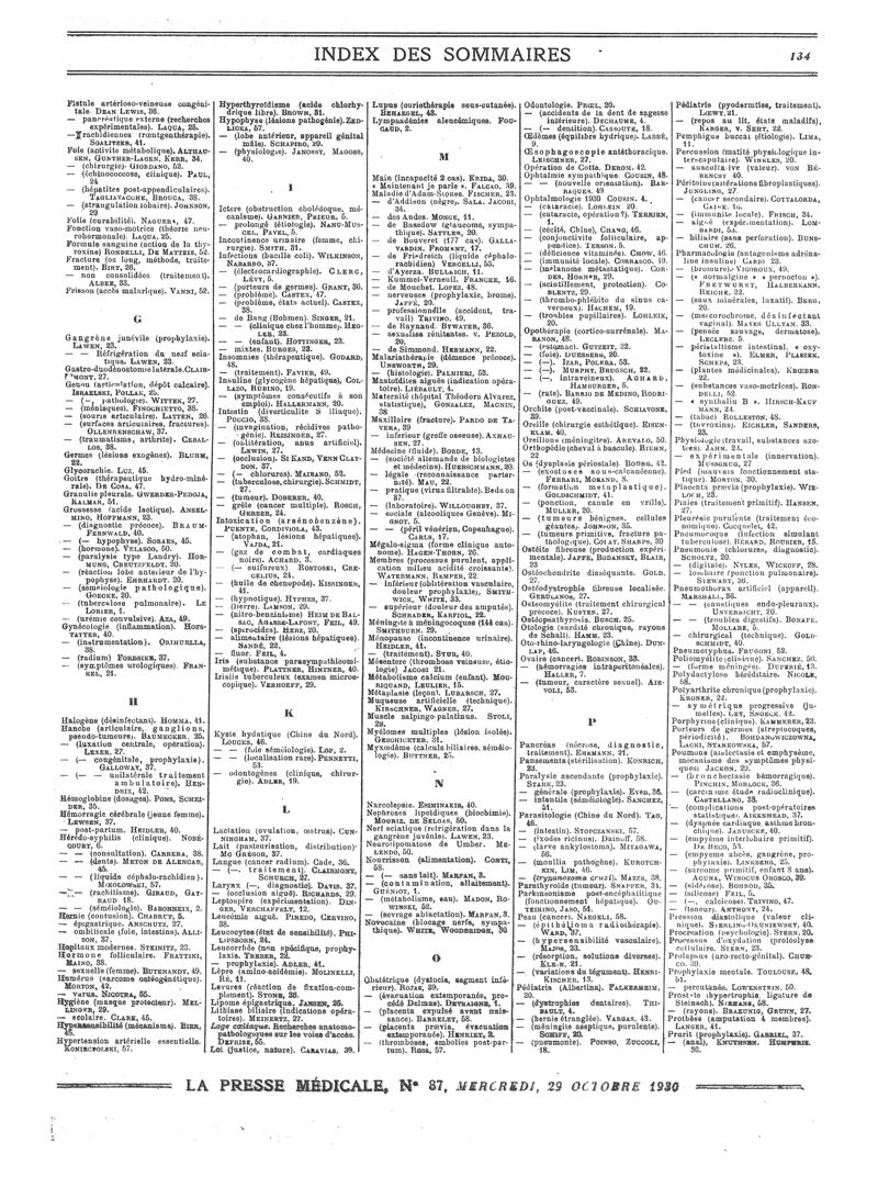 1930, Sommaires des périodiques. -