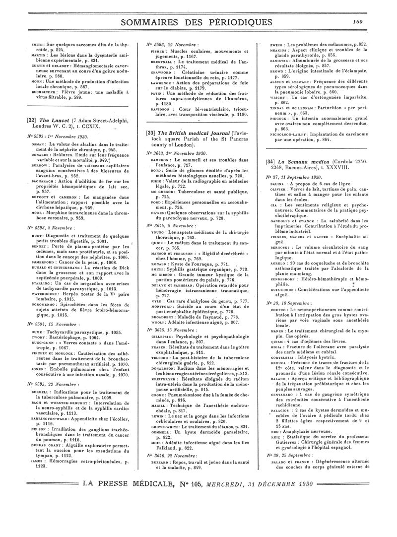1930, Sommaires des périodiques. -