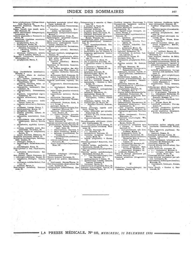 1930, Sommaires des périodiques. -
