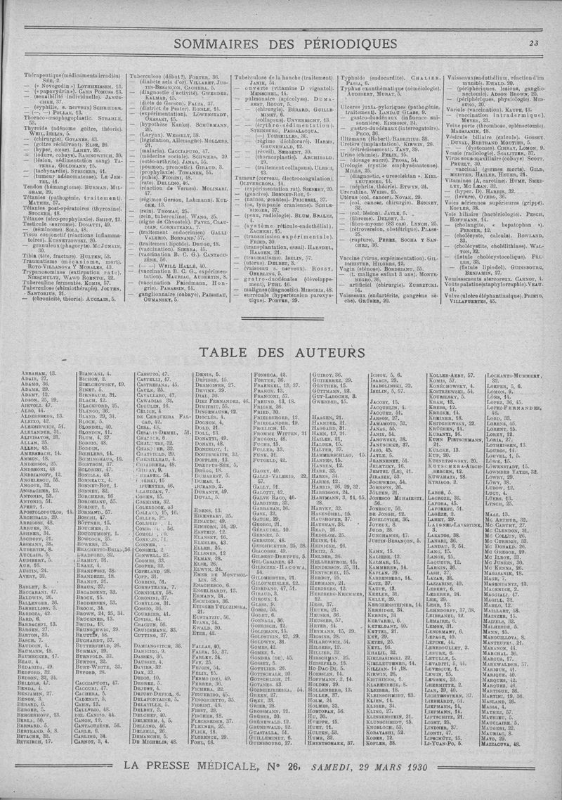 1930, Sommaires des périodiques. -