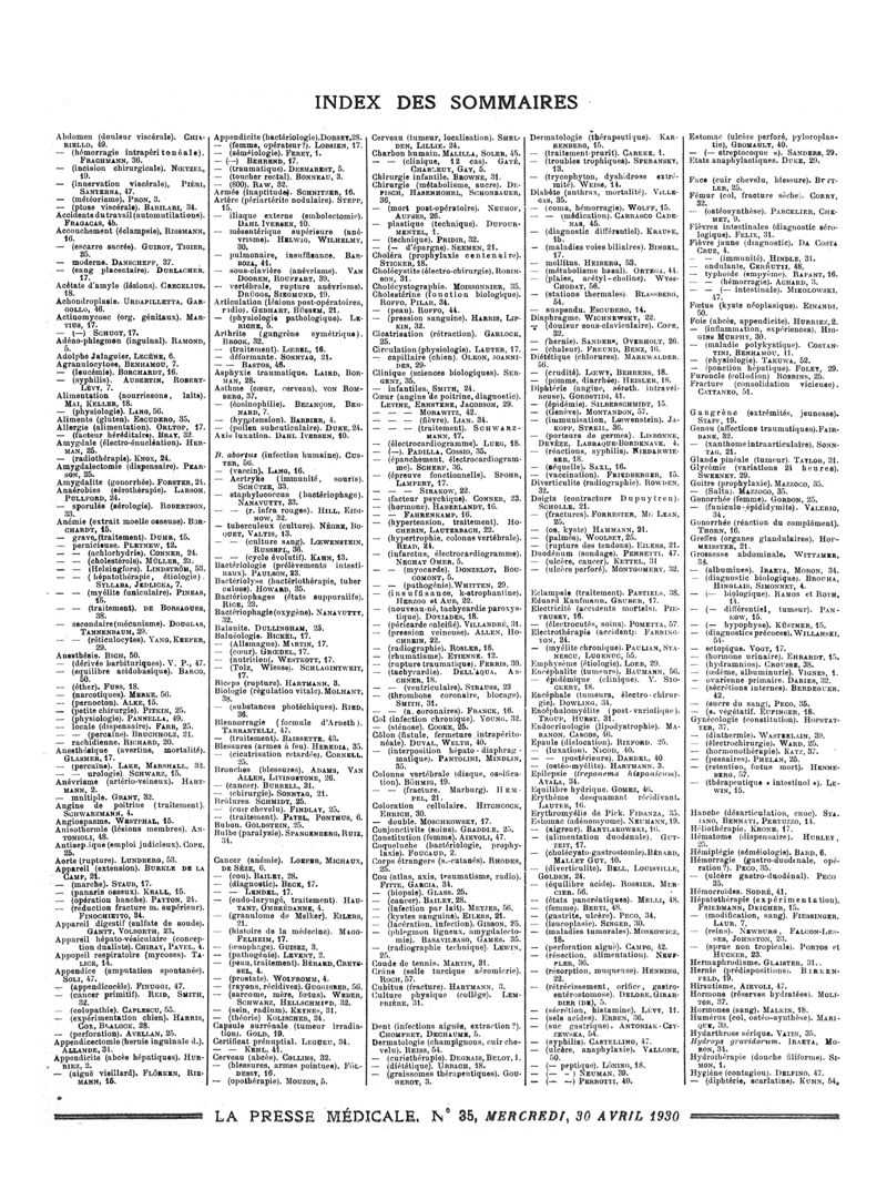 1930, Sommaires des périodiques. -