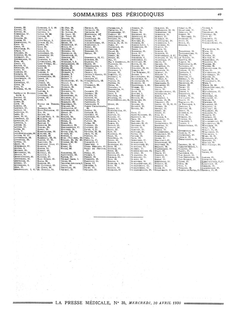 1930, Sommaires des périodiques. -