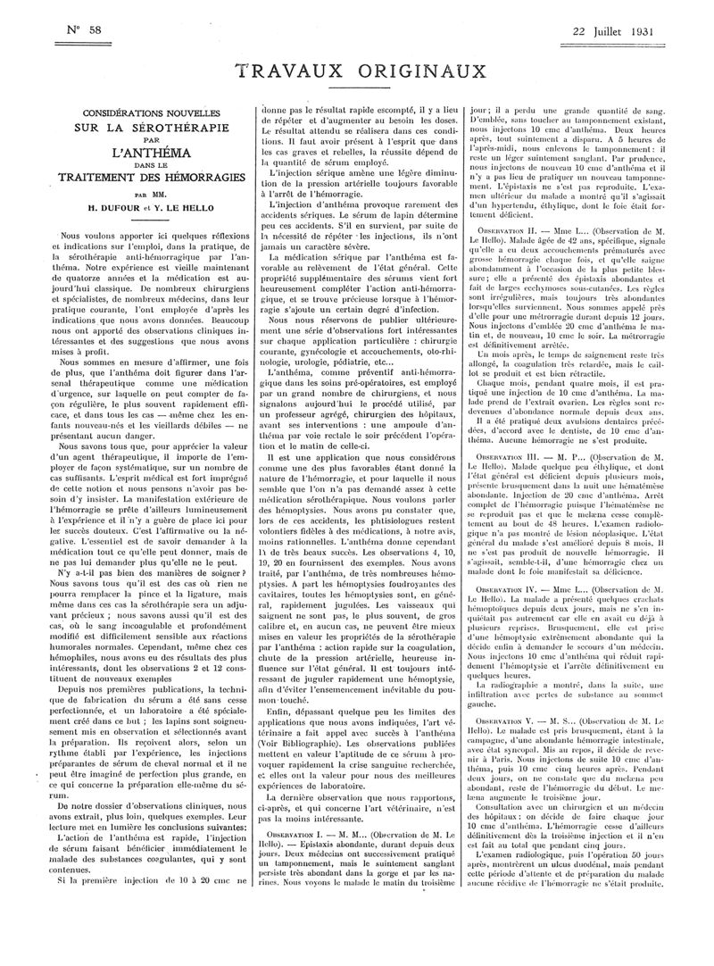 1931, Articles originaux. -