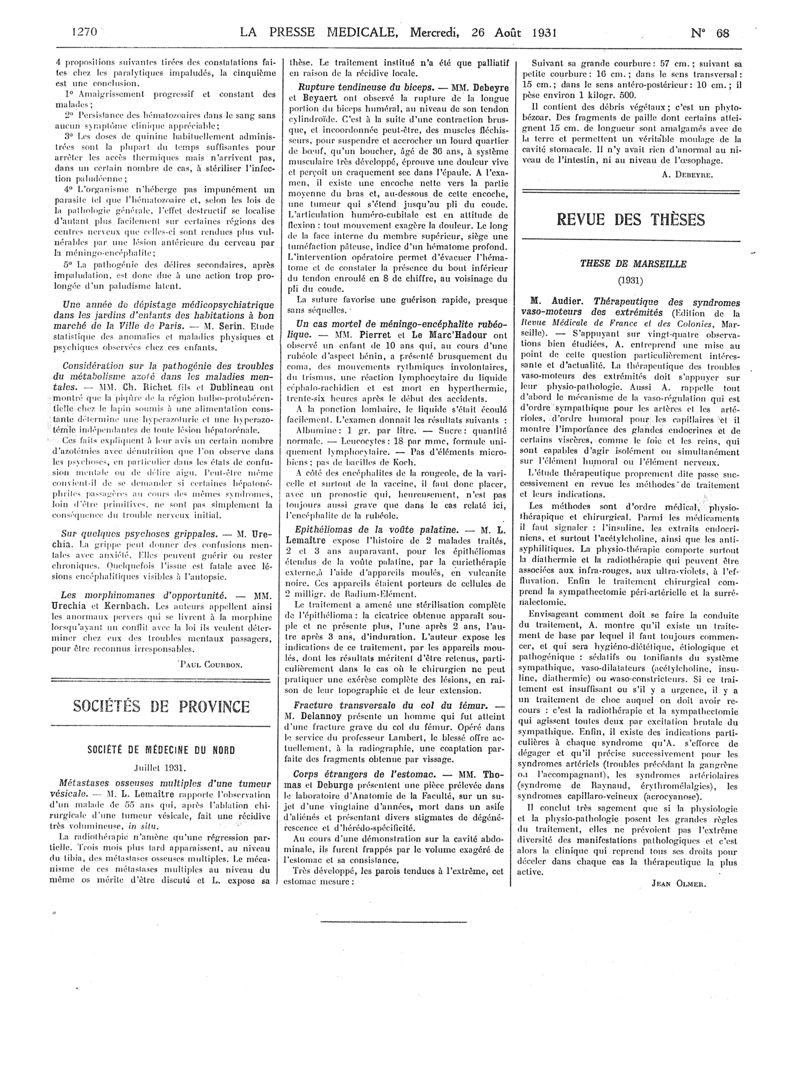1931, Articles originaux. -