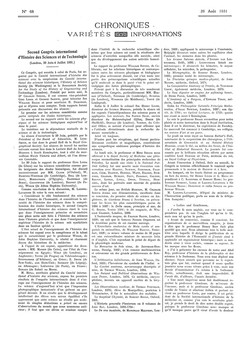 1931, Articles originaux. -
