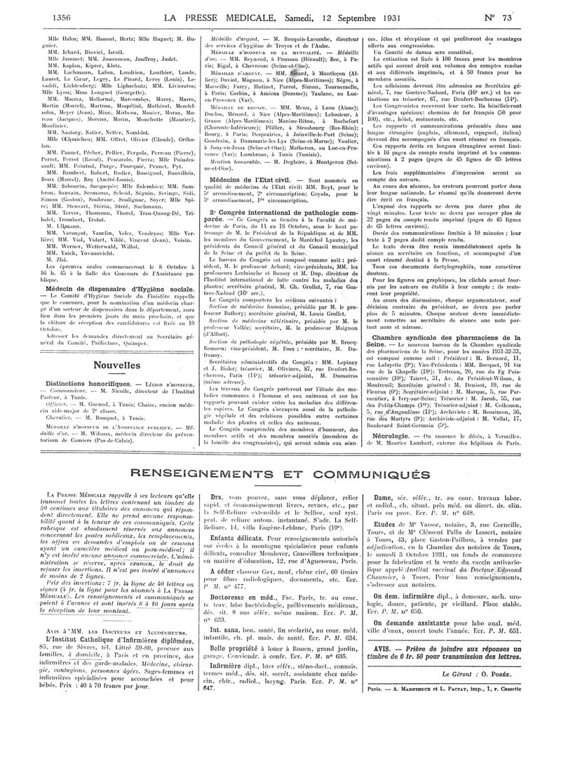 1931, Articles originaux. -