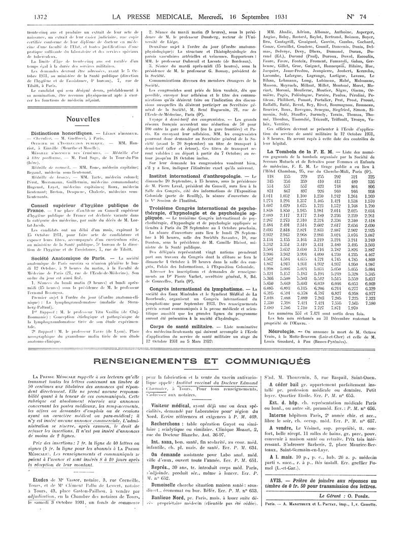 1931, Articles originaux. -