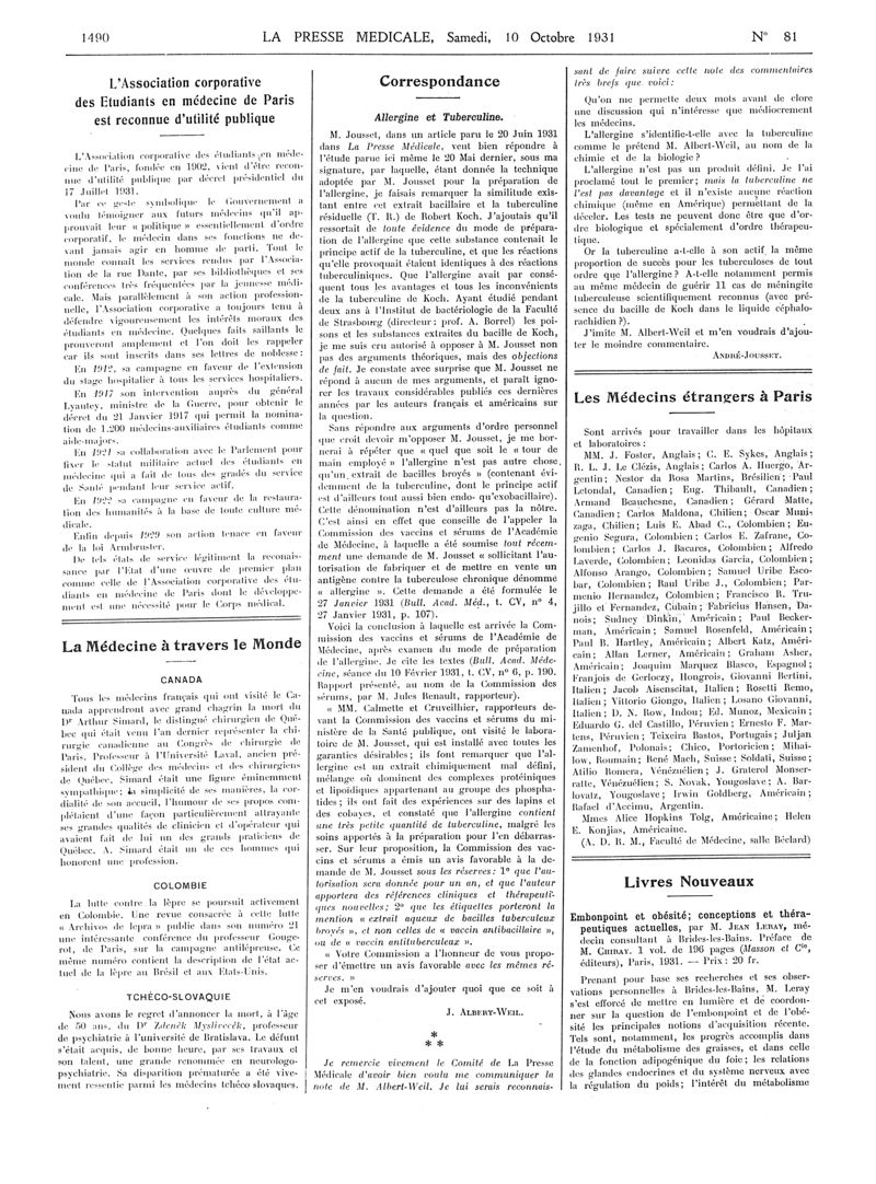 1931, Articles originaux. -
