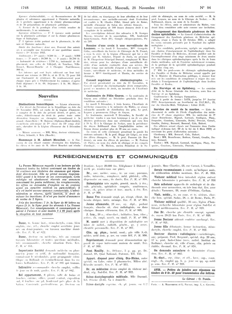1931, Articles originaux. -